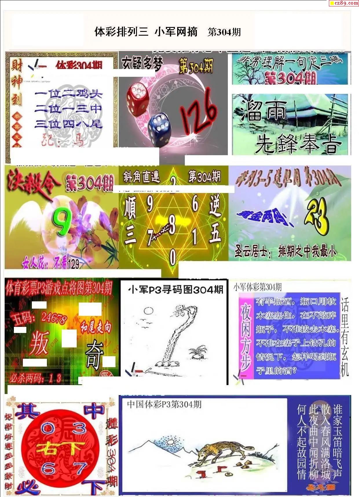 小军网摘25年304期体彩P3彩报图谜